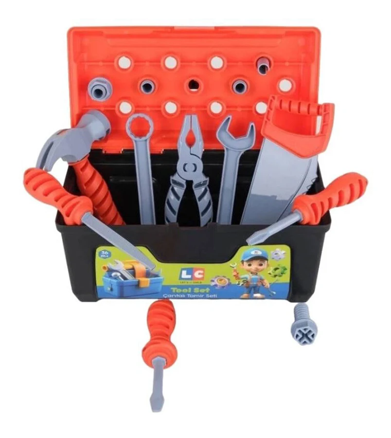 küçük ustaların hayal dünyasını gerçeğe dönüştüren, kapsamlı ve eğitici bir oyun setidir. Çocukların merak duygusunu tetikleyen bu set, içerisinde bulunan tornavida, anahtar, çekiç ve vida gibi temel el aletlerinin gerçekçi replikalarıyla küçük yaştaki çocukların teknik becerilerini keşfetmelerini sağlar. Setin en belirgin avantajı, tüm parçaların şık ve dayanıklı bir taşıma çantası içerisinde sunulmasıdır. Bu ergonomik çanta, oyun saatinden sonra tüm ekipmanın düzenli bir şekilde saklanmasına imkan tanırken, çocukların tamir setlerini diledikleri her yere (parka, arkadaş toplantılarına veya seyahatlere) kolayca taşıyabilmelerine olanak tanır.