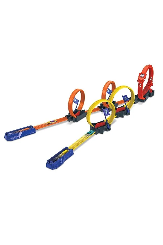 Bu özel pist tasarımı, araçların ardı ardına dizilmiş çemberlerden geçerek finişe ulaşmasını temel alır. İster tek başınıza rekor kırın, ister bir rakibe karşı kıyasıya mücadele edin; hedefiniz her zaman o devasa çemberi ilk sırada tamamlamak olmalı.