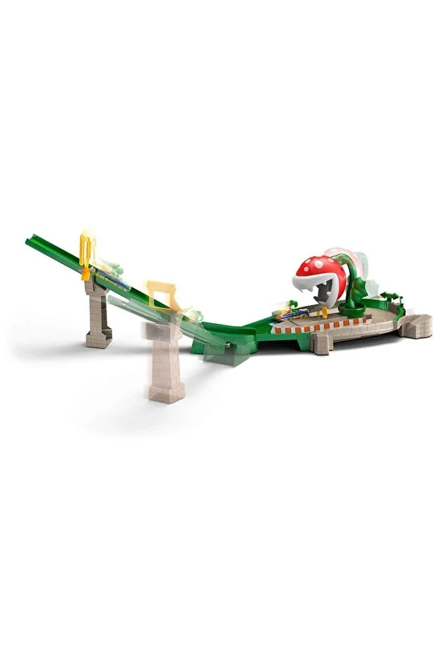 🏎️ Ürün Konsepti ve OynanışBu set, Mario Kart oyunlarındaki ikonik Piranha Plant (Piranha Bitkisi) engelini fiziksel bir oyuncağa dönüştürür. Amacınız, tehlikeli bitkiye yakalanmadan parkuru tamamlamaktır.Zamanlama Odaklı Yarış: Aracı fırlattığınızda, sallanan Piranha bitkilerinin arasından hızla geçmeniz gerekir. Eğer zamanlamanız hatalıysa, bitkiler aracınızı pistten aşağı itebilir.İkonik Karakterler: Set, oyundaki atmosferi birebir yansıtan renkler ve detaylarla süslenmiştir.Gelişim: Çocukların el-göz koordinasyonunu ve zamanlama becerilerini geliştirmelerine yardımcı olur.🛠️ Tasarım ve Mekanik ÖzelliklerSet, hem görsel hem de mekanik olarak oyunun ruhuna uygun inşa edilmiştir:Kaydırak Pist Yapısı: Pist, araçların yerçekimiyle hızlandığı eğimli bir tasarıma sahiptir.Hareketli Engeller: İki adet Piranha bitkisi, araçlar geçerken sağa sola sallanarak geçişi zorlaştırır.Bağlantı Özelliği: Diğer Hot Wheels Mario Kart pist setlerine bağlanabilir, böylece devasa bir Mario dünyası haritası oluşturulabilir.✅ Teknik DetaylarÖzellikAçıklamaModel KoduGcp26Ölçek1:64 ölçekli Mario Kart araçları için uygundurYaş Grubu5 yaş ve üzeriMalzemeDayanıklı plastik ve yüksek kaliteli boya detaylarıGüç KaynağıPil gerektirmez (Manuel mekanizma)