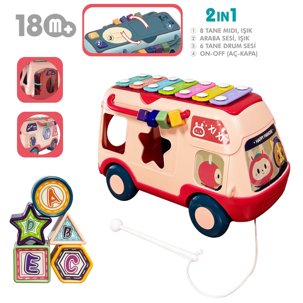 Oyuncağın gövdesinde yer alan pürüzsüz yüzeyler ve canlı renkler, görsel algıyı uyaran temel unsurlardır. Blokların her biri, bebeklerin küçük elleriyle kolayca kavrayabileceği, yutma riskine karşı güvenli boyutlarda ve ergonomik formlarda üretilmiştir. “Bul-Tak” eylemi sırasında gerçekleştirilen hassas el hareketleri, parmak kaslarının güçlenmesini sağlayarak ince motor becerilerinin gelişimine büyük katkı sunar. Cihazın üzerindeki ışıklı paneller, ritmik seslerle senkronize şekilde çalışarak görsel ve işitsel uyumun temelini atar. Ayrıca ürünün çok fonksiyonlu yapısı, bebeğinizin nesneler arasındaki benzerlikleri ve farkları ayırt etme yetisini keskinleştirir.